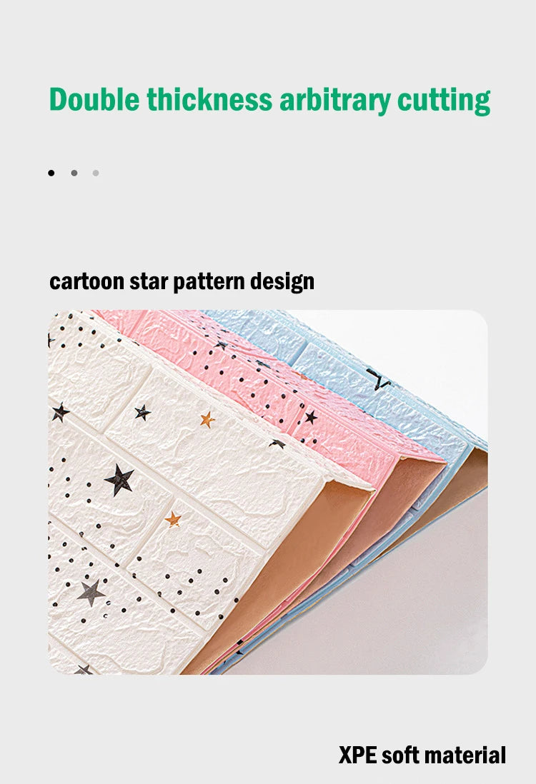 Perfect decor: 3D effect and texture, the texture of the 3D wallpaper is made with soft XPE foam material.