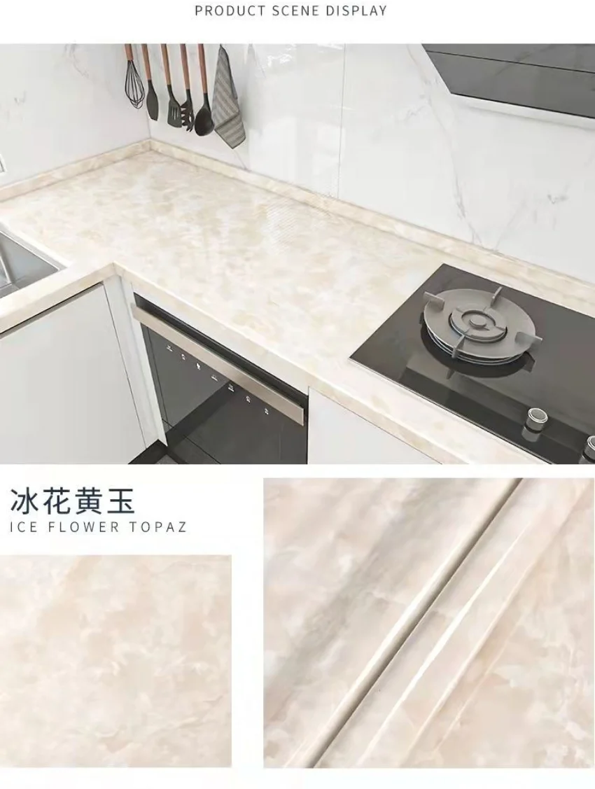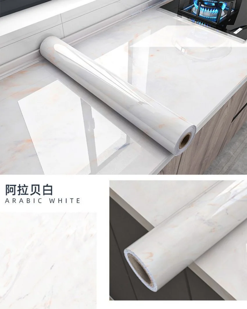 Adhesive Wallpaper Roll with 10 Meters Marble Kitchen Oil Proof Waterproof Wall Stickers Bathroom Countertop Cabinet Renovation