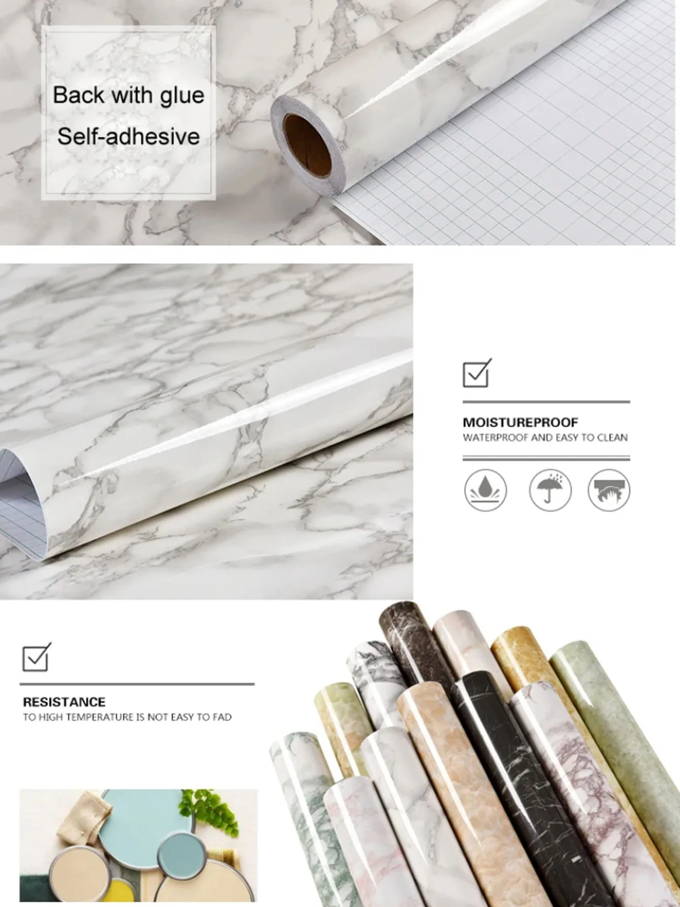 Marble Contact Paper For Countertops,Self-Adhesive Removable Wallpaper PVC Waterproof Oil-Proof Sticker For Kitchen Bathroom
